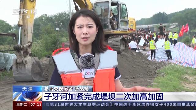 中建六局水利水电公司项目管理部负责人张仁厚★ღღ:我们累计对子牙河堤岸进行7.9公里的加高加固★ღღ。接到紧急施工任务以后★ღღ,我们迅速抽调人员★ღღ、设备★ღღ,将子牙河左岸堤坝由7米加高到8米★ღღ,此项工作一到两天内施工完成★ღღ。
